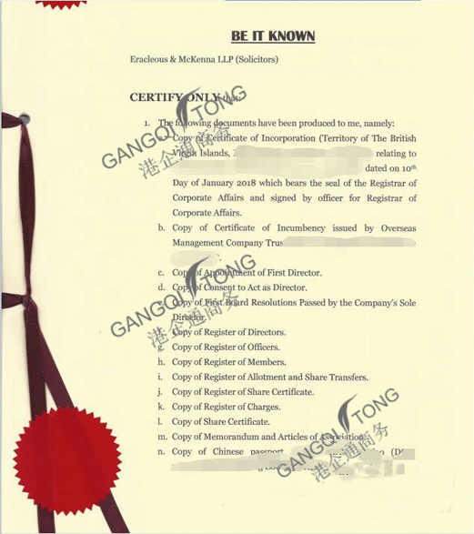 王小姐通過朋(péng)友介紹找到我們,進行了簡單的(de)了解,王小姐需要辦理(lǐ)BVI公司公證用于國(guó)內(nèi)成立代表處使用,我告知客戶這個公證我們可(kě)以辦理(lǐ),而且我們做(zuò)過很多這種公證,國(guó)際律師公證+外交部認證+中駐英使館認證即可(kě),國(guó)內(nèi)相關部門需要王小姐做(zuò)公司注冊證書,一(yī)級代理(lǐ)證明,董事股東名冊,首席代表,一(yī)般代表人公證。